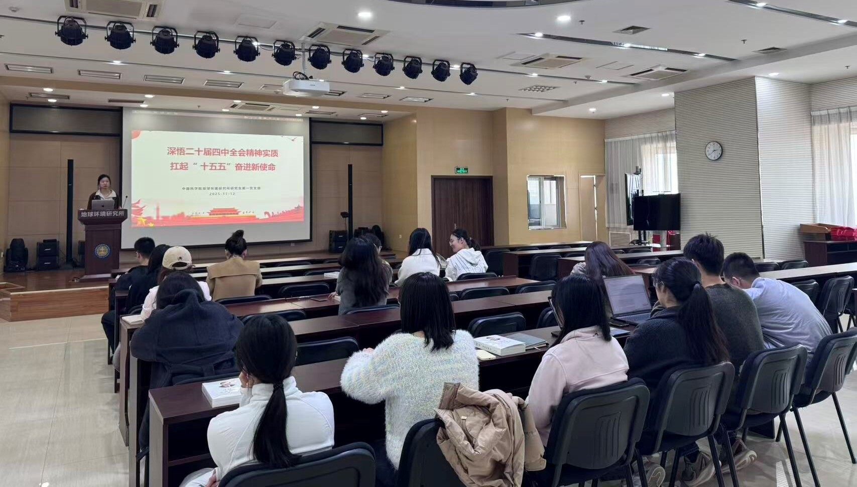 会上,党员们重点学习党的二十届四中全会精神及“十五五”规划部署。党的二十届四中全会于 2025 年 10 月在北京召开,恰逢 “十四五” 收官与 “十五五” 谋划的关键节点,具有重大现实意义和深远历史意义。全体党员在回顾“十四五”时期经济、科技、民生等领域的发展成就后,重点学习了《中共中央关于制定国民经济和社会发展第十五个五年规划的建议》,精准把握规划的核心框架与发展目标,其中绿色转型、生态环保等相关部署与地球环境研究领域高度契合,为后续科研工作精准锚定了方向。