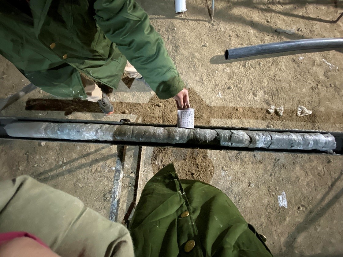 5月中旬开始气温回升很快,钻探现场最高气温在6月初就达到了40℃以上。由于太阳辐射很强,现场工作人员明显有烘烤的灼烧感,钻探现场在太阳暴晒下也无处可躲。为了按时完成工作进度,在做好个人防护及简单防中暑措施的情况下,党员同志们带头顶着热浪坚持施工与岩心整理封装,挥汗如雨却难掩收获高质量岩心的喜悦。在6月24日钻进到1001.66m,如期完成了设计的1000m钻探深度,达到了预期的目的层位,为进一步开展环境变化研究获得了珍贵的岩心材料。