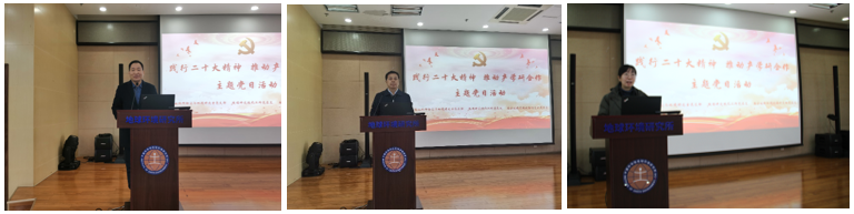 为深入落实中国科学院党组关于二十大精神学习宣贯工作部署要求,深刻领会地环所党委延安研修活动精神,加快推进地环所发展转型,进一步促进产学研合作,2022年11月16日上午,中国科学院地环所粉尘与环境研究室党支部、西安地球环境创新研究院党总支联合陕煤研究院化工所党总支在地环所岩心库大楼1103多功能厅开展“践行二十大精神推动产学研合作”主题党日活动。地环所党委委员于学峰出席活动并代表所党委致辞,粉尘室党支部书记黄宇、创新院党总支书记刘春卓、陕煤化工所党总支书记徐婕以及40余名党员代表参加了活动。