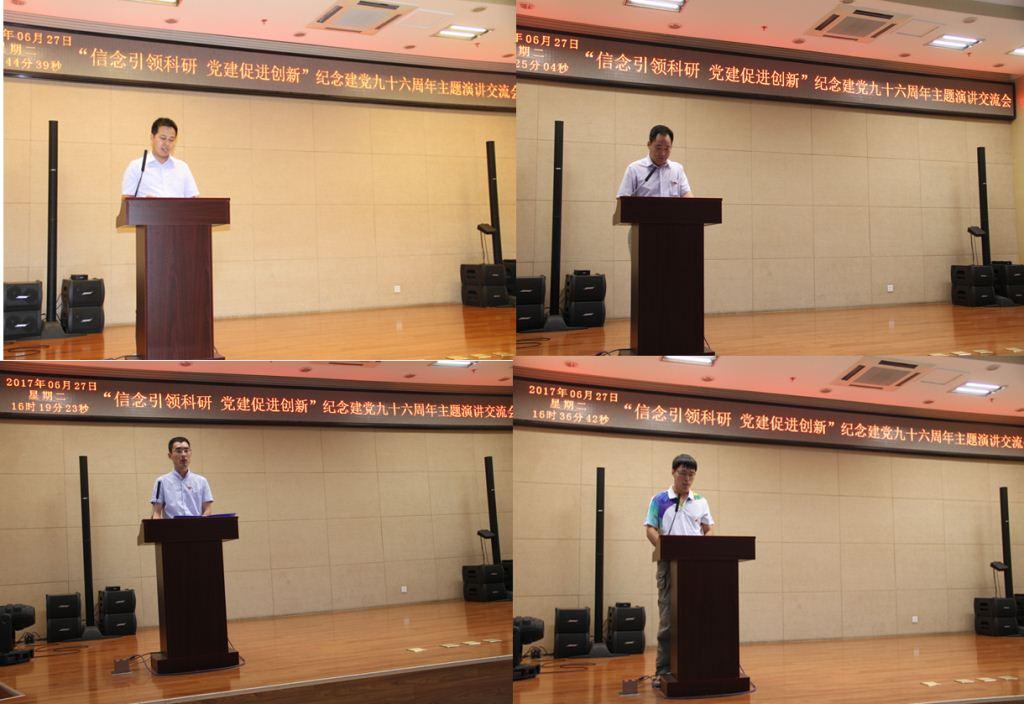 此次演讲交流活动共有来自各支部推荐的9名党员参加了演讲,其中包括所杰青、所青年人才、中层管理干部、技术支撑岗位一线职工、博士后、博士生。参加演讲同志围绕“信念引领科研 党建促进创新”这一主题,讲述了自己科研成长道路上的经历和感悟;讲述了对理想的追求和对信念的执着;讲述了研究所老一辈科学家坚定信念、无私奉献、献身科研的感人事迹;讲述了在“两学一做”学习教育中的收获;讲述了学习系列讲话对推进本职工作的切身体会等。演讲人员用生动的事例、真实的感情讲出了自己或身边党员对“信念、科研、党建、创新”的感悟和收获,内容积极向上,演讲生动激情,赢得了大家的热烈掌声。