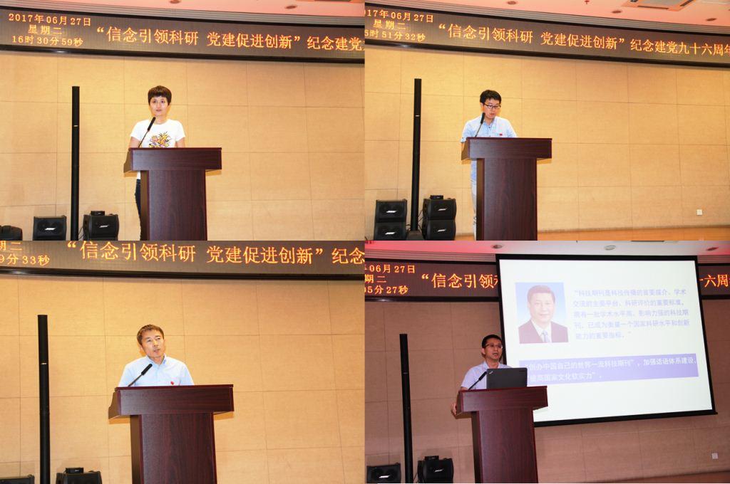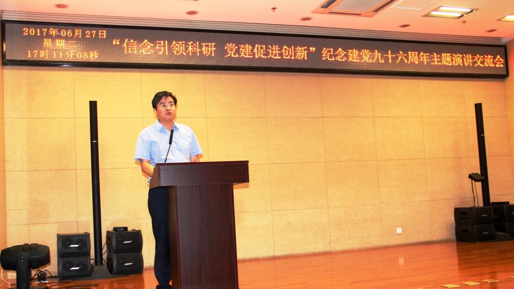 为庆祝中国共产党成立96周年,扎实推进“两学一做”学习教育常态化制度化,进一步坚定理想信念,弘扬科学精神, 2017年6月27日下午地球环境研究所组织举行了迎接建党96周年——“信念引领科研 党建促进创新”主题演讲交流会,全体党员、入党积极分子120余人参加会议,会议还特邀研究所民主党派代表和群众代表出席。所纪委书记康贸易主持交流活动。