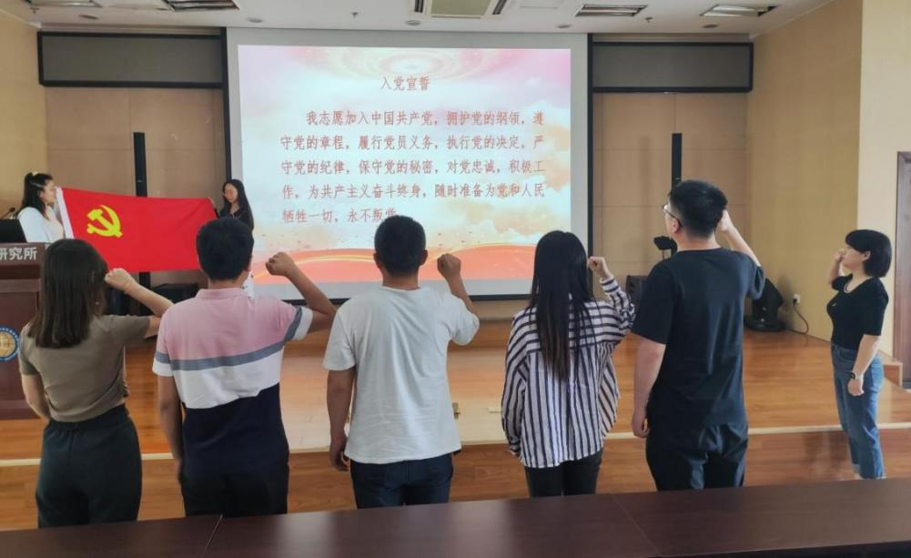 会后,近期发展的预备党员李瑞、何山、王国卫、徐馨、徐杰在吴江瑛同志的带领下进行了入党宣誓。