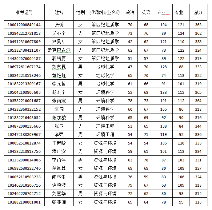 中科院地球环境研究所2022年硕士调剂生复试考生名单