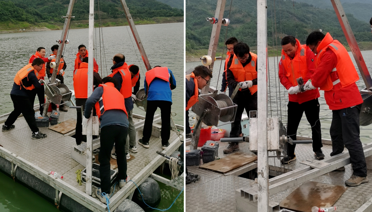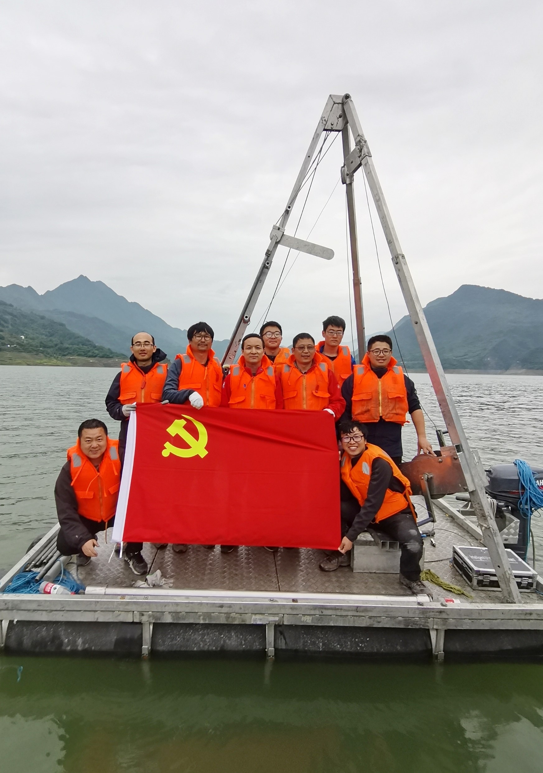 紫坪铺水库水上钻探人员合影