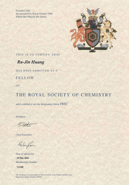 英国皇家化学学会(the Royal Society of Chemistry)成立于1841年,是国际化学界最有影响的团体之一。根据专家推荐,学会每年遴选英国及国际上在化学科学研究领域取得杰出成就以及为推动化学科学发展作出卓越贡献的科学家为其会士。