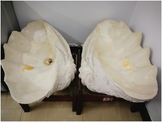 “如果哪位参观者能一个人将1.2 m的大砗磲从5楼实验室搬到1楼,这个大砗磲宝贝就送给他”,刘成程博士生笑着跟大家说道。这个1.2 m的大宝贝重达300斤,平时挪动他需要2-3个成年男子才能抬得动。想抬回家做澡盆,哪有那么容易!