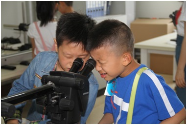 实验室工作人员详细地讲解了树轮的前世今生,从寻找样地到获取树芯,在到年纹判读与校正,以及后续的树轮样品处理。孩子们纷纷坐到显微镜前,当了一回小小观察家。