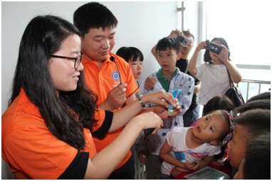 “雾霾这么可怕,那我们该怎么办呢?”旁边一位小朋友有点着急了。工作人员笑了笑,“在雾霾天减少外出,戴口罩,使用净化器;当然,我们已经做出了比较强效的针对霾污染的纳米光催化材料,而且用在了室内空气净化器和西安市的除霾塔上。我相信,蓝天终将属于我们。”