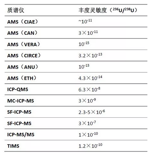 既然α谱仪效果不理想,科学家就另辟途径——利用质谱仪数原子个数。这些年为了测量好236U,科学家也是煞费苦心,先后尝试了热表面电离质谱仪(TIMS),电感耦合等离子体质谱仪(ICP-MS),加速器质谱仪(AMS)。各种质谱仪为236U发挥更大的作用提供了可能。