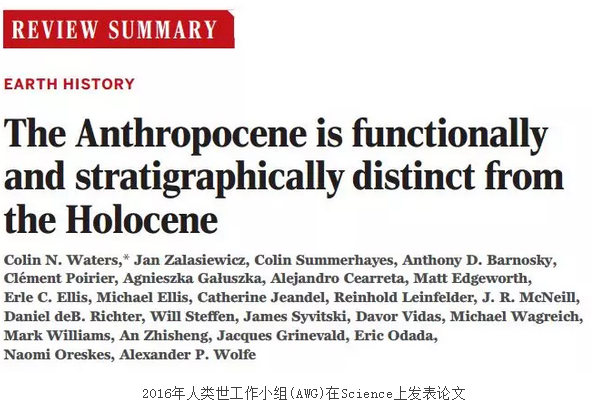 2016年,作为人类世工作组成员(AWG,The Anthropocene Working Group),包括我所安芷生院士在内的全球24位顶尖科学家一起在Science杂志上发表Review文章,指出人类世在功能和地层上不同于全新世,建议以核爆或者1950年为其起点。