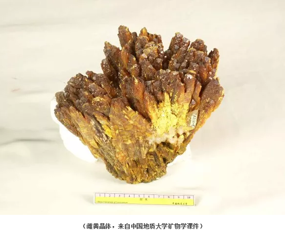 为什么随口说话能和雌黄联系在一起呢? 原来,古人写字用黄纸,雌黄的颜色和纸的颜色一样,错了就直接用雌黄进行修改,相当于我们小时候用的涂改液。 说起雌黄,就不得不提及它的伴侣—雄黄。 矿物世界中,雄黄和雌黄经常共生在一起犹如一对鸳鸯,是以冠名鸳鸯矿物。