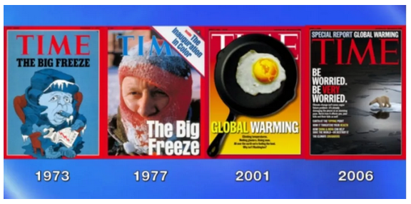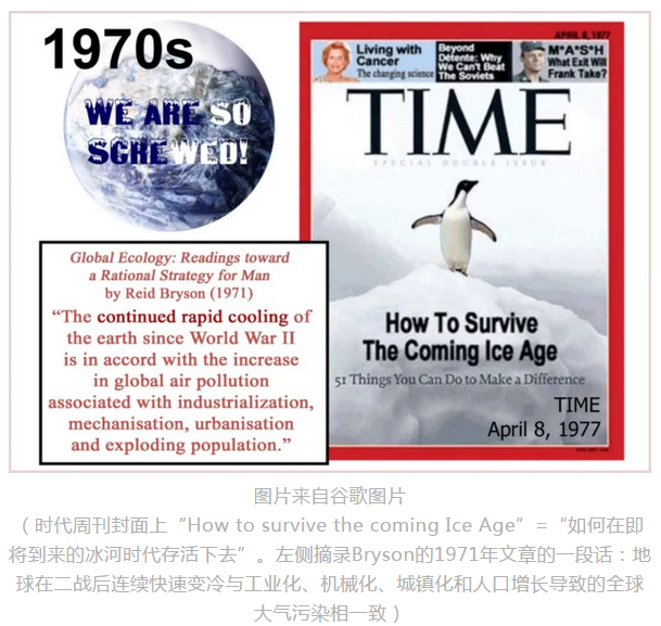 美国《时代周刊》(TIME)在1977年曾用“如何在即将到来的冰河时代存活下去”为题渲染气候变冷对人们生存的影响。