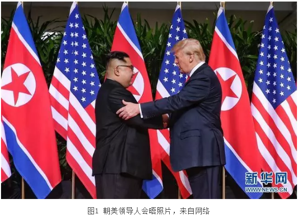 2018年6月12日上午,一则重磅消息瞬间吸引全世界的目光,朝鲜国务委员会委员长金正恩与美国总统特朗普在新加坡圣淘沙岛嘉佩乐酒店正式会面并进行会谈。这是自上世界50年代以来两个一直“互相敌视”的国家最高领导人的首次会晤(图1),对于缓和朝鲜半岛局势、维护东北亚地区的和平稳定具有划时代的重要意义。