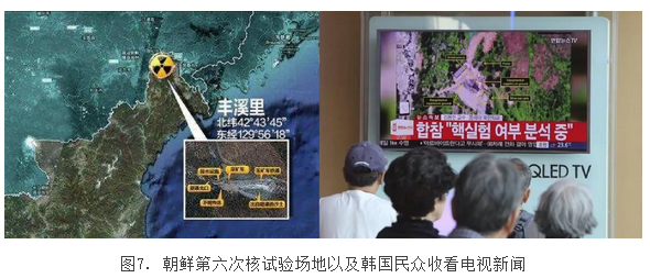 2017年9月3日,朝鲜宣称成功进行了第六次核试验(图7)。我国环保部在第一时间启动了二级应急响应状态,进行了为期8天的环境放射性监测,但均未检测到放射性泄露(环保部网站信息)。但是在朝鲜核试验后,利用在西安地区连续收集的大气气溶胶样品,通过加速器质谱测定放射性核素129I水平时,西安加速器质谱中心团队却发现了比核爆前提高了超过四倍水平的129I异常信号,直觉所带来的兴奋感会告诉你,难道这与9月3日的朝鲜第六次核试验有关?如果真的与核试验有关,为什么环保部的监测并没有显示出来?如果129I信号的升高与朝鲜核武器试验没有关系,那又是什么原因造成的呢?这引起了我们的重视和极大的兴趣。