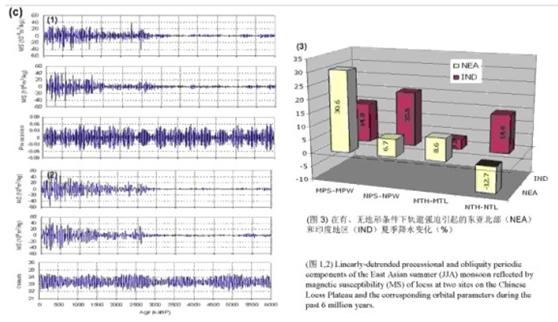 c: 青藏高原隆升对东亚季风轨道尺度气候变率的调制。利用美国大气研究中心(NCAR)的气候系统模式(CCSM2.01,T31L26),完成了一组(8个)同时改变地形高度和地球轨道参数的数值试验。经过对模拟的风速、大气湿度、土壤湿度等要素的详细分析,结果发现高原的存在放大了东亚夏季风对轨道强迫的响应,因而青藏高原可视为东亚季风气候变率的放大器。
