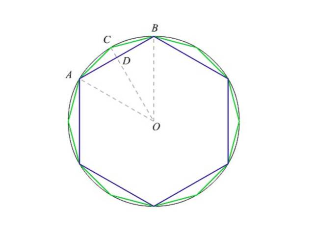 远古时期,交通基本靠走,通信基本靠吼,测量靠啥?靠的是实物,精度也就可想而知了。造个圆的车轱辘都难于上青天。把π的比率搞到小数点后两位这一点点进步,更是花费了人类不少时间。公元前1500年,巴比伦人的泥板上,π是25/8,也就是3.125;在古埃及,π是(16/9)2,也就是3.16,大约是用面积反推;古印度的一些典籍里面,π和根号10一样,等于3.162;《九章算术》干脆就直接“周三径一”,π=3.33。后来,“数学家”这种生物出现了。世界在他们的眼里,不再是一个个的车轱辘,而是简洁的线条和抽象的规则。圆溜溜的边没法下手,那我们就拿长得像圆的开刀:六边形比方的“更圆”,八边形比六边形更圆,二百五十六边形从远处看基本就是圆了……这就是所谓“割圆术”的基本思想。