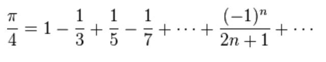 割圆术,就是非常原始的微积分中的极限思想,不停地割,总会无限地靠近“圆”对吧?这种蛮力,被微积分举重若轻地这么一概括,不仅简明不少,而且把“无限地割下去”这个动作本身,也用“无穷级数”固定下来了。其实,在莱布尼茨和牛顿二位登场之前,早在14世纪的印度,一位名叫马德哈瓦(Madhava of Sangamagrama)的数学家,就使用了无穷级数的方法算π。这个喀拉拉邦(Kerala)数学和天文学校的老师,在他的著述里面研究了三角函数,给出了正弦、余弦和反正切函数的幂级数表达式,还有π的无穷级数计算公式,和后来莱布尼茨给出的算法基本是一个思路: