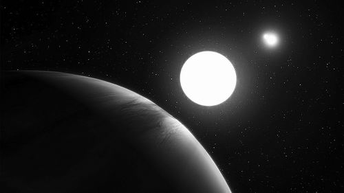研究人员日前发现了一个奇异的三恒星系统。在该系统中,有一颗巨大的行星围绕其中一颗恒星运转。
