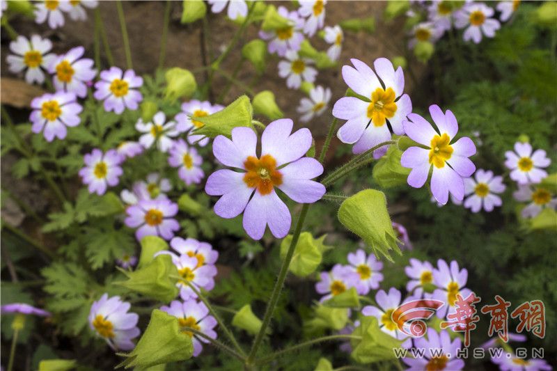报春花属植物主要分布于北半球温带和高山地区,沿喜马拉雅山两侧至云南、四川西部为本属的现代分布中心。分布于秦岭地区的报春花约有17种,大多于4-5月陆续开花,陕西羽叶报春花期相对较早。