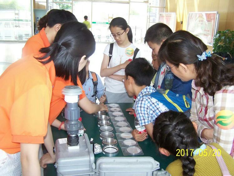 听完介绍,讲解老师右手第一位小朋友发问了:“老师,降解污染的装置会不会产生有害尾气造成二次污染?这种装置这么好为什么没有推广使用?”