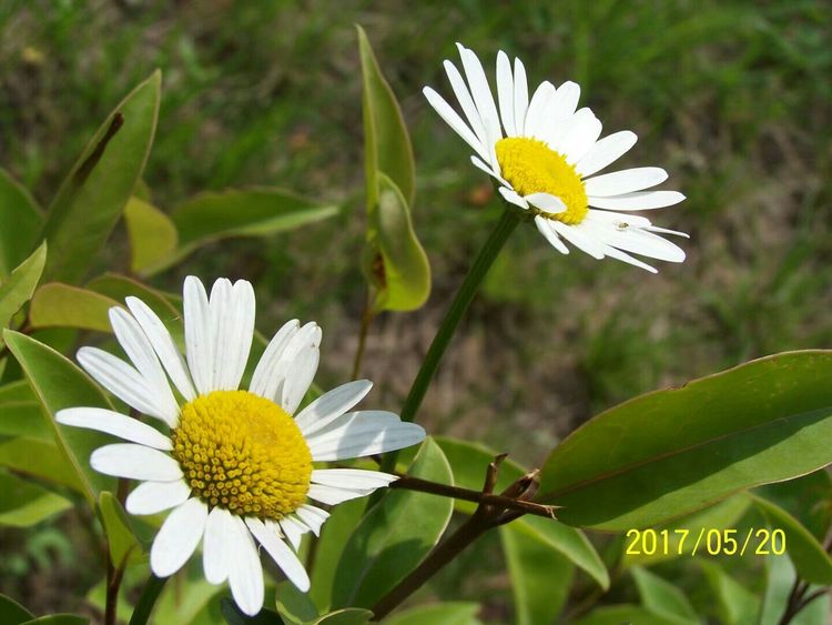 路上,小花朵朵镶嵌在绿丛中,甚是可爱。