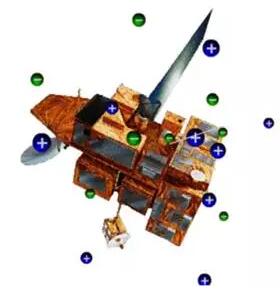 图3 沉降电子在卫星表面沉积,电离层离子缓解表面充电电位