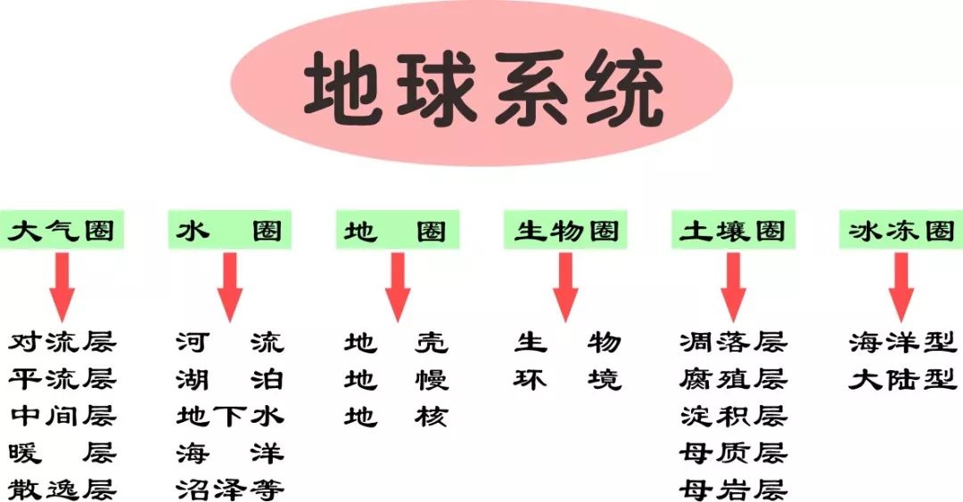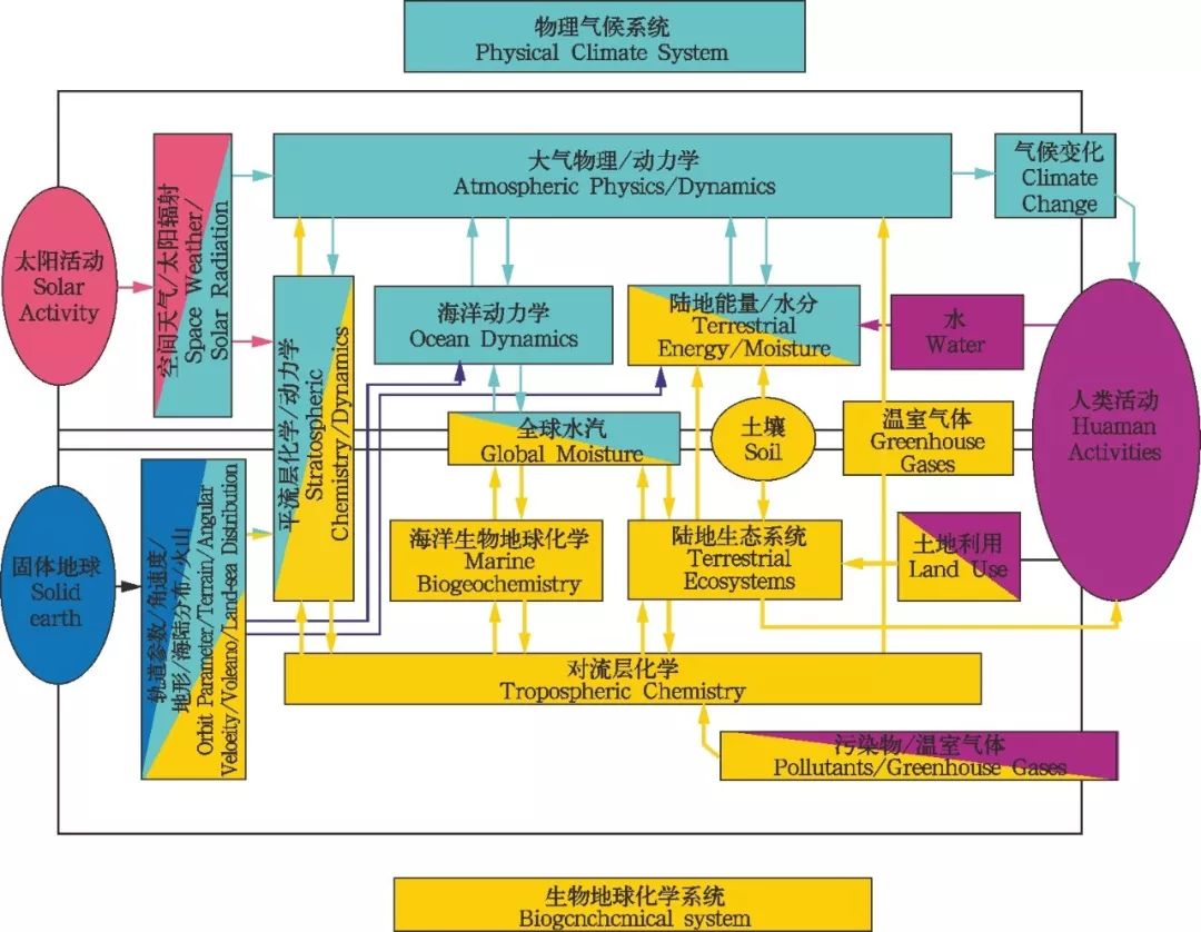同时地球系统的物理、化学及生物过程在空间上又可以分为许多子过程,各个过程彼此交错,相互影响。