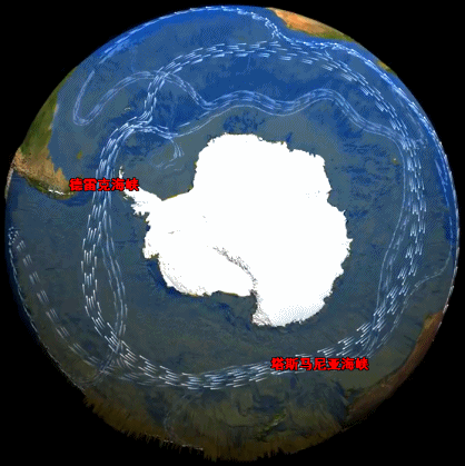 新生代以来,全球温度呈现阶段性下降趋势,始新世/渐新世之交(~34 Ma),降温极为剧烈,导致南极冰盖形成。德雷克和塔斯马尼亚海峡通道的开启导致环南极洋流(Antarctic Circumpolar Current,ACC)形成,从而阻碍了低纬向南半球高纬的热量传输,进而导致南极冰盖增长。当南极冰盖继续增长,扩大的冰盖范围足以封闭整个德雷克海峡时,这时环南极洋流受阻,环南极西风漂流带会消失,增强赤道热量向南极的输送,使扩展冰盖趋于消失,这是南极冰盖不能扩展成南半球大冰川的一个重要原因。