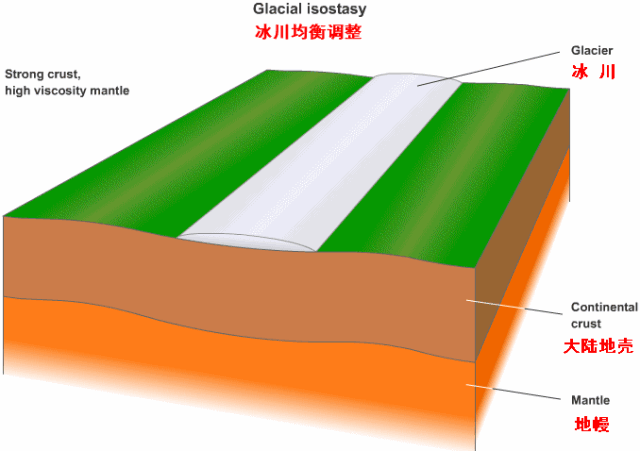 冰川均衡调整(Glacial isostatic adjustment,GIA)岩石圈对冰期地表冰和海水负荷改变的响应。一方面末次冰消期以来,北美的劳仑泰冰盖、科迪勒拉和伊努伊特冰盖以及欧亚大陆的不列颠、斯堪的纳维亚和巴伦支海-喀拉海等冰盖大规模融化,大量的冰融水进入大洋,造成全球平均海平面上涨约120 m;另一方面,由于冰川的卸载和海洋盆地的加载引起的地球内部物质的重新分布,导致冰后的地壳运动、地球重力场和应力场的变化,在之前的冰盖覆盖区,可能造成海平面的下降。