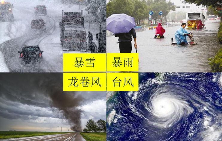 图1 暴雨、暴雪、龙卷风、台风等都属于天气事件,发生时间尺度为天、小时、分钟甚至秒