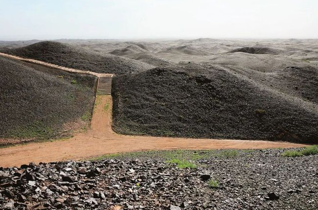 黑戈壁,主要分布在马鬃山等剥蚀山地的山前地带。指这种戈壁的砾石以黑色的碎石为主,远看像一片煤块,其表面有黑灰色的“漆皮”。