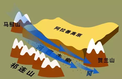 在初秋或者冬季的时候,西伯利亚上空的冷高压南下进入中国境内,寒流就通过河西走廊通向中国的西北,华北甚至东南沿海地区。当寒流经过河西走廊的时候,由于受其峡谷地形的影响,会形成“狭管效应”,风速明显增大,从而造成由于强风而引起的黑风暴,寒潮等自然灾害。