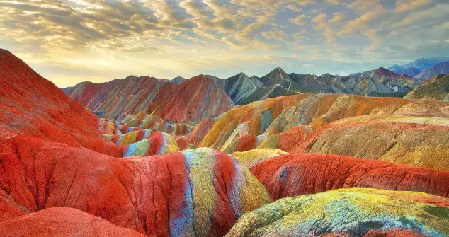 不同于我国其他地方的丹霞地貌,张掖丹霞是我国独有的丹霞地貌和彩色丘陵的复合景观,红、黄、橙、绿、白、青灰、灰黑、灰白等多种鲜艳的色彩,把无数沟壑 、山丘装点得绚丽多姿。