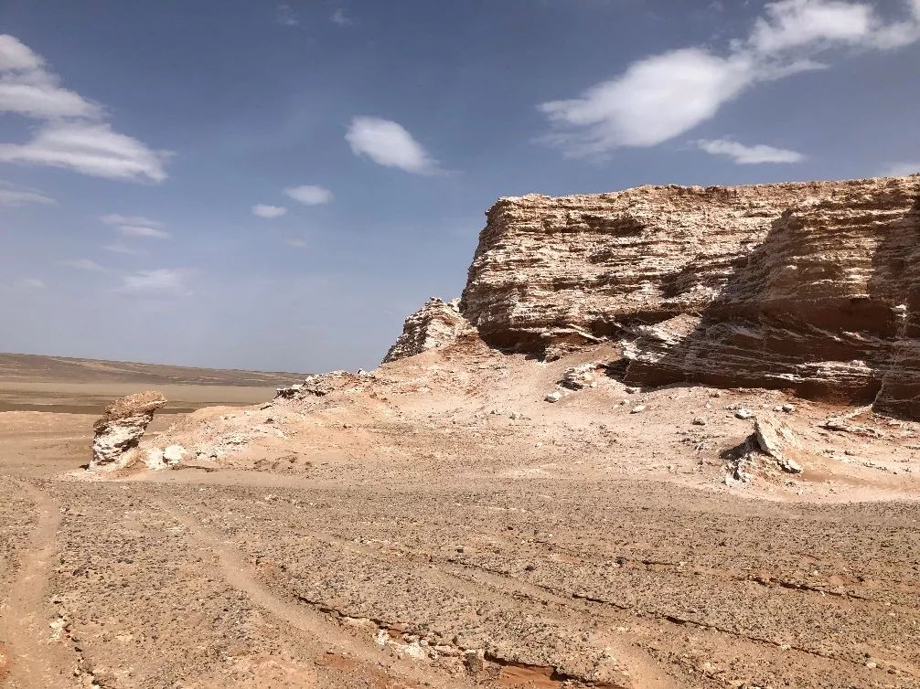 沙漠的形成至少需要两个条件:干旱少雨气候条件和充足的沙源。塔里木盆地内部丘陵和周边山地岩体经过漫长的风化剥蚀和夷平作用,经流水尤其是洪水、暴雨搬运到山麓和盆地边缘形成三角洲和洪冲积平原,这些沉积物经过风力吹扬分选,成为塔克拉玛干沙漠的主要来源, 在长期干旱少雨的气候条件下,形成了巨大的塔克拉玛干沙漠。那么如何确定沙漠的形成年代呢?直接的证据就是找到沉积最厚的地方,利用钻探获取岩心,通过测定沉积物中出现最早大规模风成沙的年代。另一方面可以通过间接证据如周边山地的风成沉积黄土反推沙漠的形成年代。但目前关于沙漠形成的年代仍有几种观点,从2000多万年到几十万年,沙漠的形成之谜还有待于科学家们更深入的研究。我们这次考察就是为了选择合适的地点进行环境钻探,以揭示沙漠的演化过程和气候环境变化历史的联系。