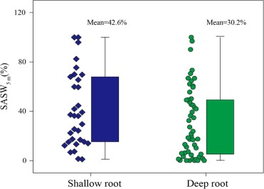 图 3 浅根性植物和深根性土壤有效水饱和度