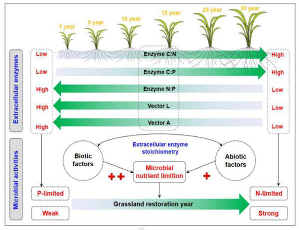 中科院地球环境研究所黄土高原恢复草地土壤微生物群落与胞外酶限制取得进展