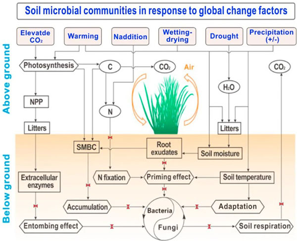 图4 全球变化因子对土壤微生物群落影响的概念示意图