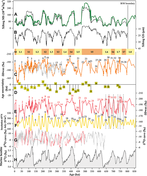 图2 80万年以来叶蜡氢同位素建立的黄土年代序列