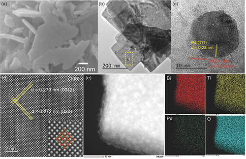 图1 Pd-Bi4Ti3O12纳米片复合结构的形貌结构表征