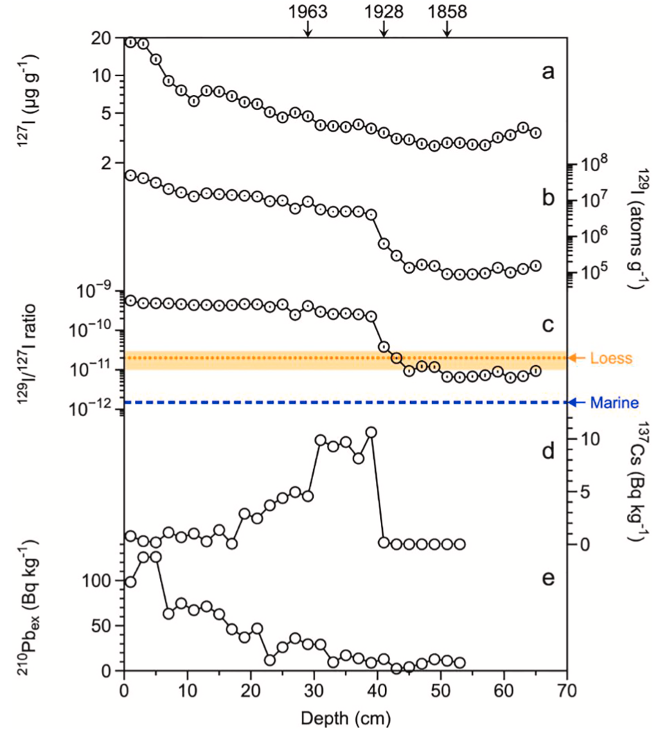 图1. 雪水河阶地沉积物碘同位素深度分布特征
