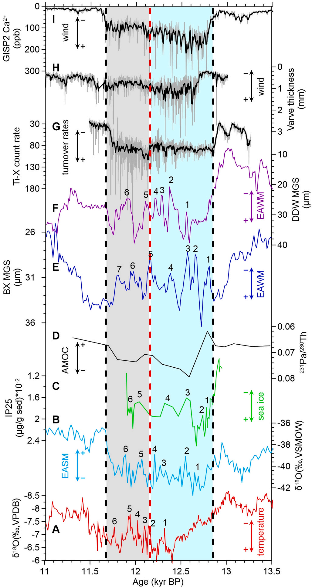 地球环境研究所在新仙女木时期东亚冬季风百年尺度振荡方面取得研究进展