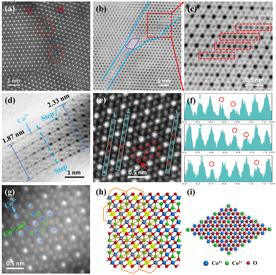 图1. 超薄二维Co3O4纳米片的无序原子结构及活性位点暴露情况