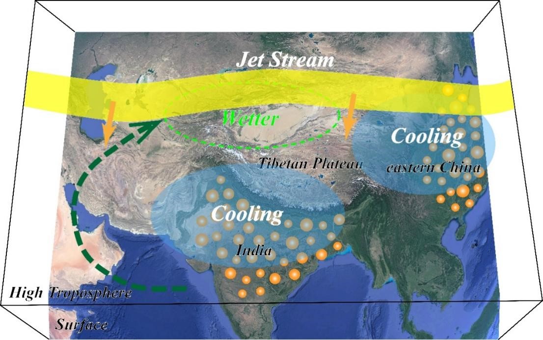 该研究表明中亚干旱区降水异常与南亚和东亚地区人为气溶胶排放之间存在遥相关,突出了人为气溶胶对大气环流和水循环影响的远程效应,并指出我国西北地区气候变化除了受到全球温室气体排放的影响,还依赖于南亚和东亚污染区的气溶胶排放,为准确预估我国西北地区未来气候变化提供了新的线索。