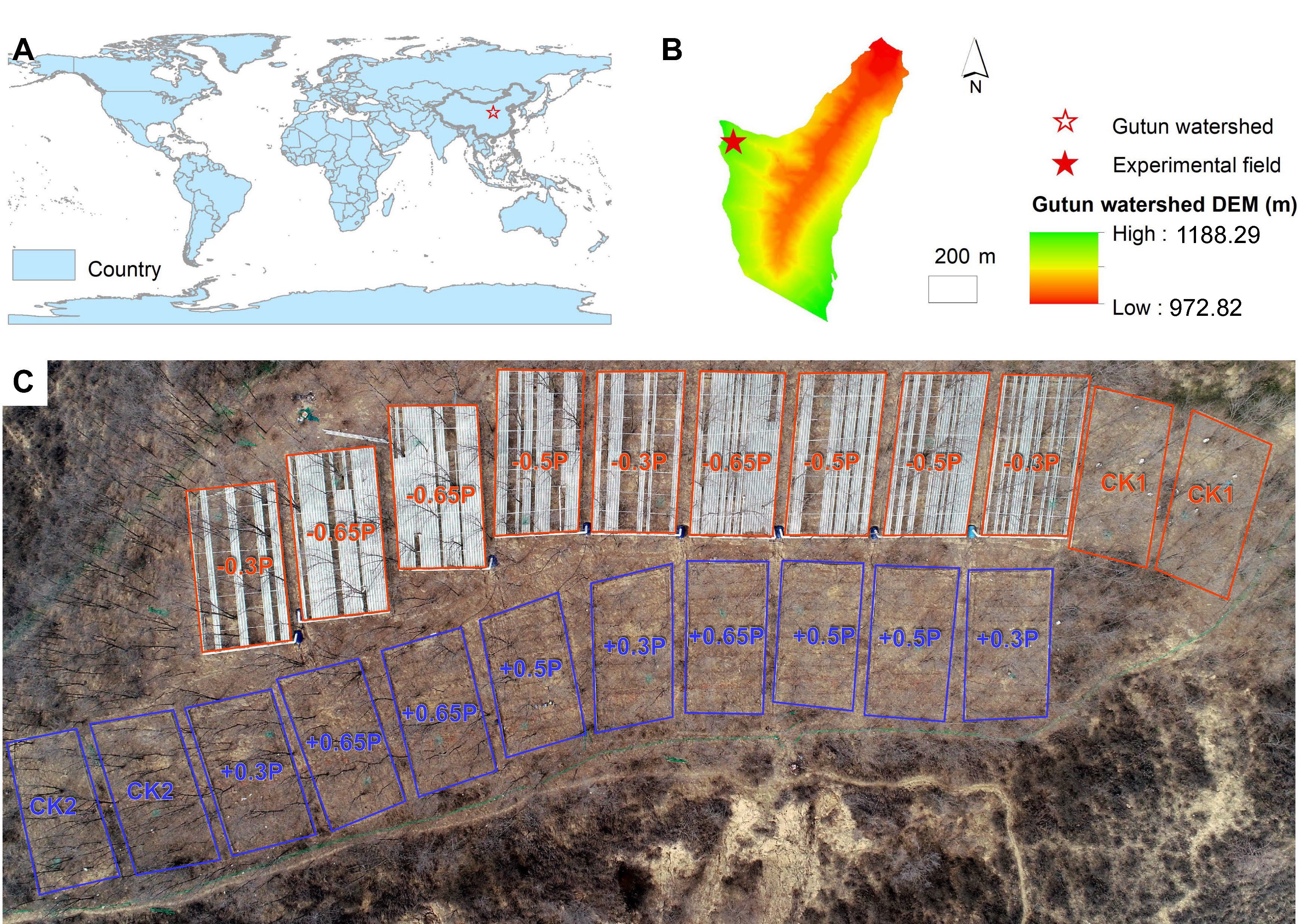 土壤干层的形成对土壤-植被-大气连通体中的水循环过程和水文效应具有深刻影响。土壤干层形成以后,其动态演化过程对将会直接或间接影响地表植被系统的水土保持和生态服务功能。然而,正常水文条件下土壤干层的变化过程缓慢,难于获得变幅较大的野外观测数据,进而使得土壤干层的动态演化过程研究面临挑战。通过搭建野外降水控制试验平台,实现土壤水分输入端的定量控制,可模拟极端干旱和极端降水事件的发生情景,增加土壤水分变化的通量和幅度,为探究极端气候条件下土壤干层的动态变化及后续地表植被响应提供了契机。