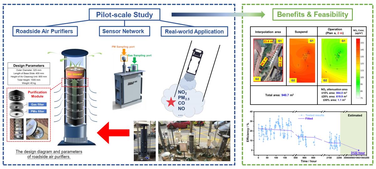 Xinwei Li, Shuwen Han, Pengge Wang, Han Mei, Zhi Ning, Fan Dong, Long Cui, Yu Huang*, Tao Wang, Shao-Yuan Leu, Meng Wang, Shun-cheng Lee*, 2024, Application of roadside air purifiers in urban street canyons: A pilot-scale study in Hong Kong, Science of The Total Environment, 912, 168671.
