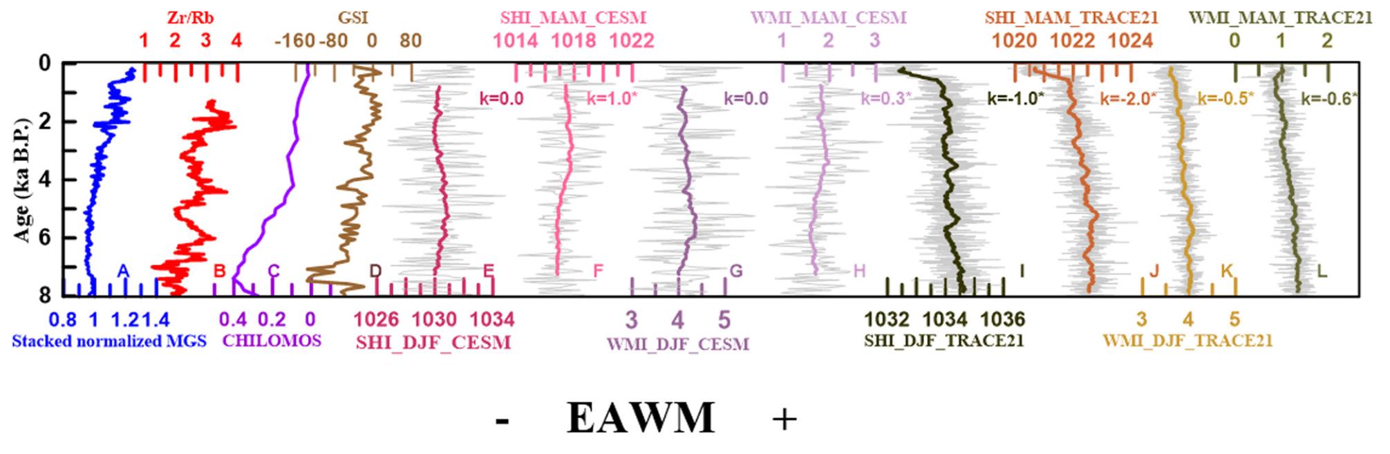 东亚冬季风是亚洲一个重要的气候系统,对社会和经济具有重要影响。然而,关于全新世以来东亚冬季风变化及其相关机制的认识仍存在明显争议。近年来的高分辨率黄土粒径记录表明中全新世以来的东亚冬季风具有显著增强趋势,但诸多数值模拟结果表明中全新世以来的东亚冬季风是减弱趋势,这就产生了类似于类似温度变化的“全新世东亚冬季风谜题”,模拟与记录之间的差异也凸显了全新世气候变化动力学的复杂性。
