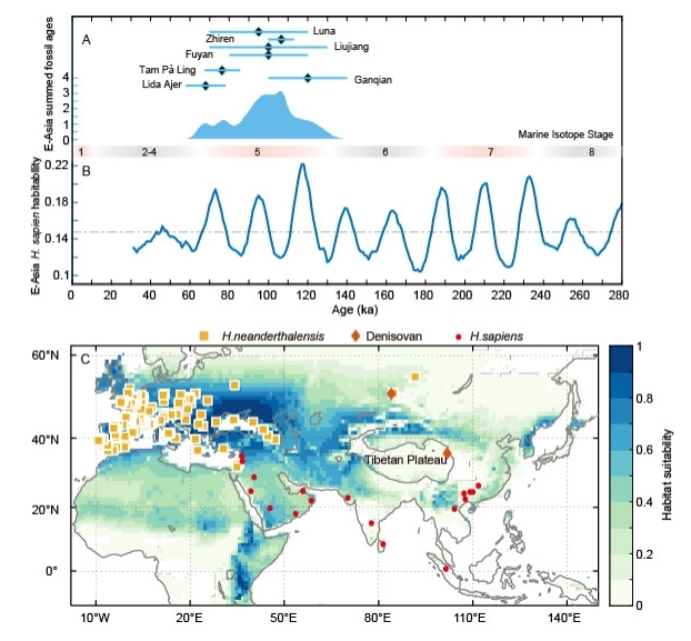 中国科学院地球环境研究所黄土与气候变化研究团队敖红研究员和安芷生院士联合韩国釜山大学阮骄杨博士、西班牙人类演化国家研究中心Mar a Martin n-Torrese教授、英国剑桥大学Mario Krapp博士等国内外专家,基于中国黄土的高分辨率亚洲夏季风重建、东亚古气候模拟、整合亚洲古人类遗址记录、古人类栖息环境模拟,对轨道尺度亚洲季风变迁与古人类从非洲迁徙到东亚之间的关系进行了研究。