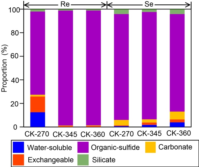 图1 城口页岩风化剖面典型页岩样品Re和Se在不同相态中的分布