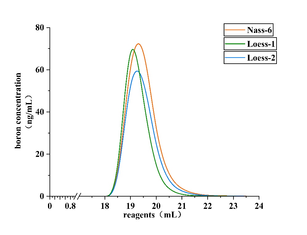 图1. 阳离子树脂和硼特效树脂组合对不同样品的淋洗曲线