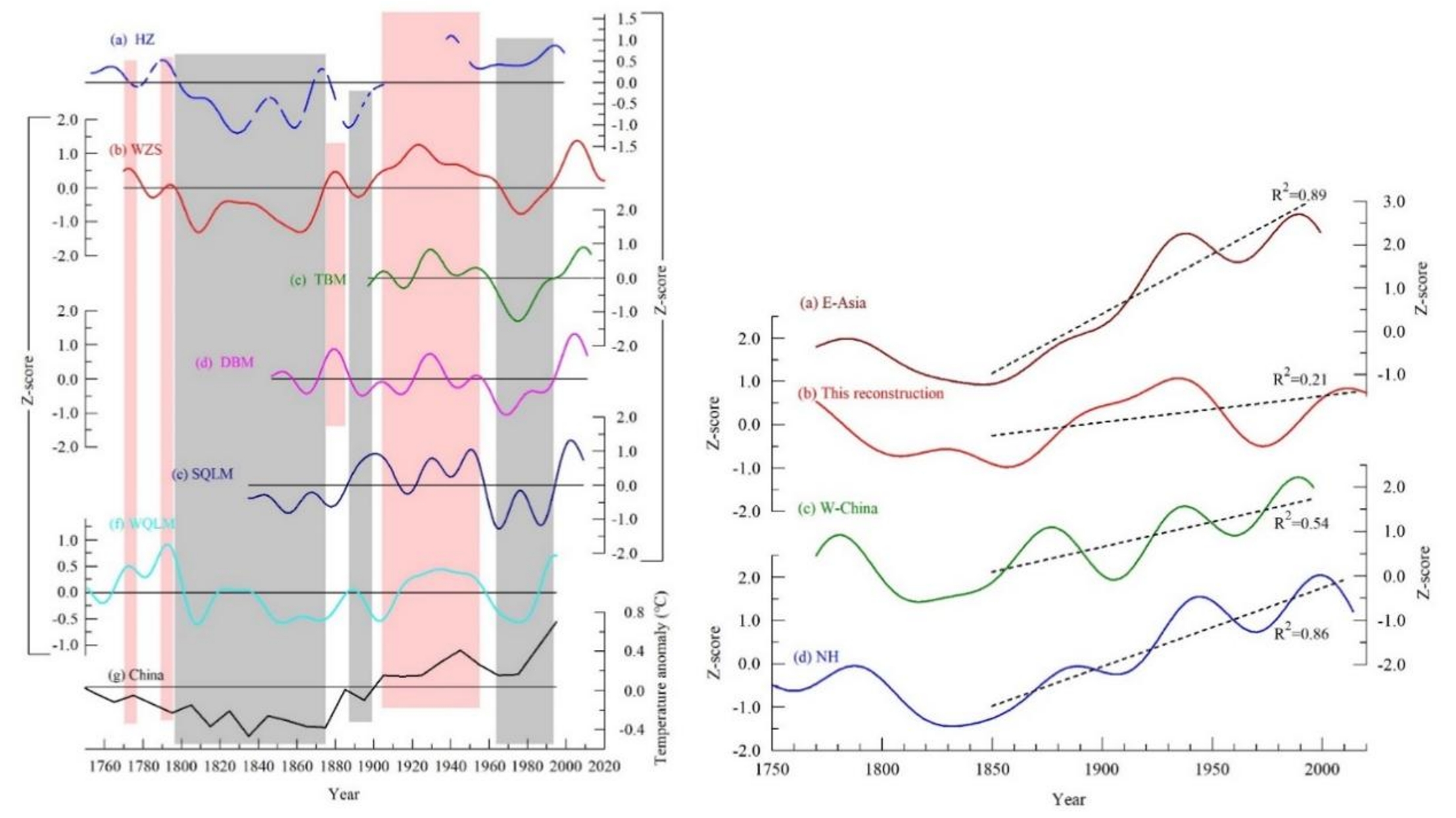 图2 秦巴地区温度重建(b)与其他温度记录对比